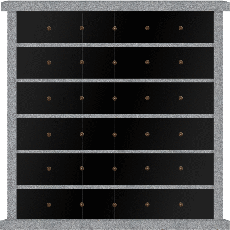 * 36 Niche Columbarium 7-1×1-5.5×7-1 China Grey/Jet Black China Grey Walls/Jet Black Doors; Single Sided, 6×6 Niches CFS-L-095-inch; Includes Rosettes, Keys & 4 Extra Niche Door
