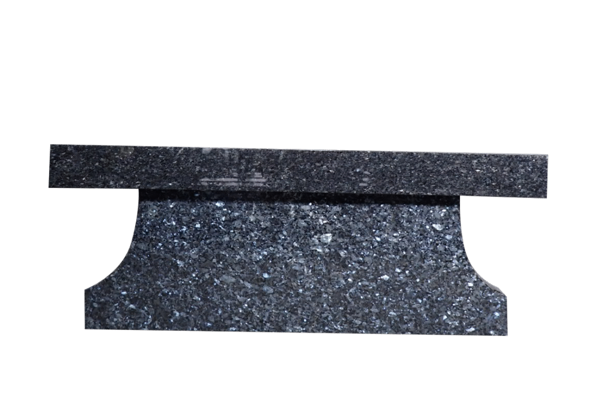 * Cremation Pedestal Bench 4-0x1-2×0-4 Custom Blue pearl Pedestal 3-6×0-10×1-2 AP w/ (4) 6″x10″ Core Holes Seat AP, Pedestal Feet 4″; Family Legacy Design