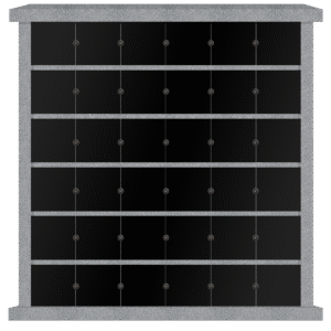 80 Niche Horizontal 2-Sided Columbarium 8-7×2-7×6-0 China Grey Walls/Jet Black Doors Extra doors, CFS-E-LP-059