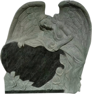 Angel Draped Over Heart 3-6×0-8×3-6 AP Bahama Blue Fully Carved Angels w/ Roses
