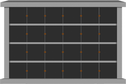 48 Niche 2 Side Columbarium 6-7×2-7×4-11 China Grey/Jet Black Horizontal-China Grey/Jet Black Doors; 2 Sided, 6×4 Niches CFS-L-029-1 ; Includes Rosettes, Key & 4 Extra Niche Doors